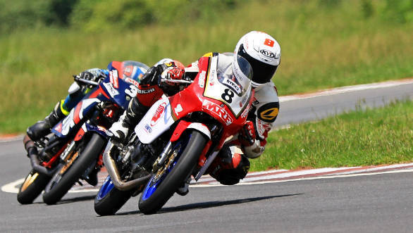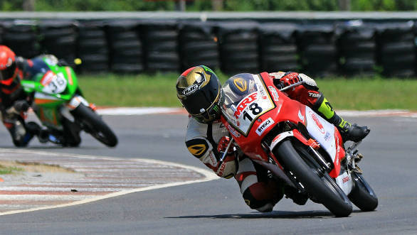 Mithun Kumar of Honda Ten10 Racing topped the qualifying session in the Pro-Stock 165cc class with Naresh Babu (RACR) and Senthil Kumar (Honda Ten10 Racing) completing the front row. Kumar finished first in the race on Saturday, followed by Kevin Kannan from Rockers Racing and Rahil Shetty (Sparks Racing). Rahil Pillari Shetty, a 20-year-old from Hyderabad, scored his first win of the season in this category in the second race held on Sunday.