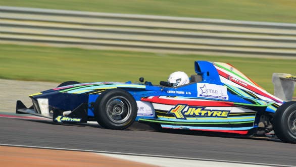 Chennai's Vishnu Prasad (C)won Day 1 of the 21st JK Tyre National Racing Championship-Grand Finale (LGB Formula 4 category)