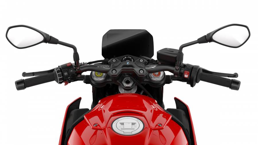 The new S 1000 R's 6.5-inch TFT instrument cluster has been taken over from the S 1000 RR. S. The rider can choose between customised screen displays for various purposes. The Pure Ride Screen, for example, provides all the necessary information for normal road riding, while a further Core Screen shows displays for banking angle, deceleration and traction control. A Bluetooth smartphone interface which allows app-based arrow navigation is already included as standard. The TFT display is operated comfortably from the handlebars using the multi-controller. The optional M package provides a third Core Screen with bar display and lap timer.