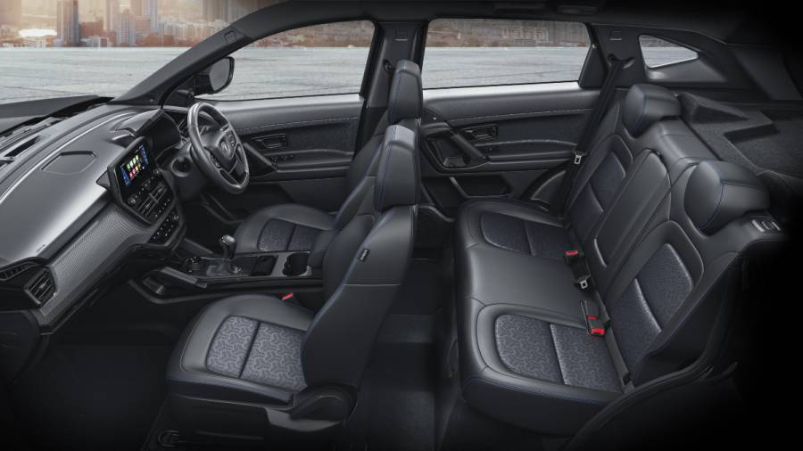 The Tata Nexon Dark Edition is available in the top XZ+, XZA+, XZ+(O) & XZA+(O) variants in both petrol and diesel. This SUV gets Charcoal Black R16 Alloys, the Dark mascot on the fenders, Sonic Sliver body highlights along with matte Granite Black cladding. The interiors offer a special dark interior pack that features premium leatherette upholstery withtTri-arrow perforations on seats and door trim. The front headrests are finished with an embroidered Dark signage.