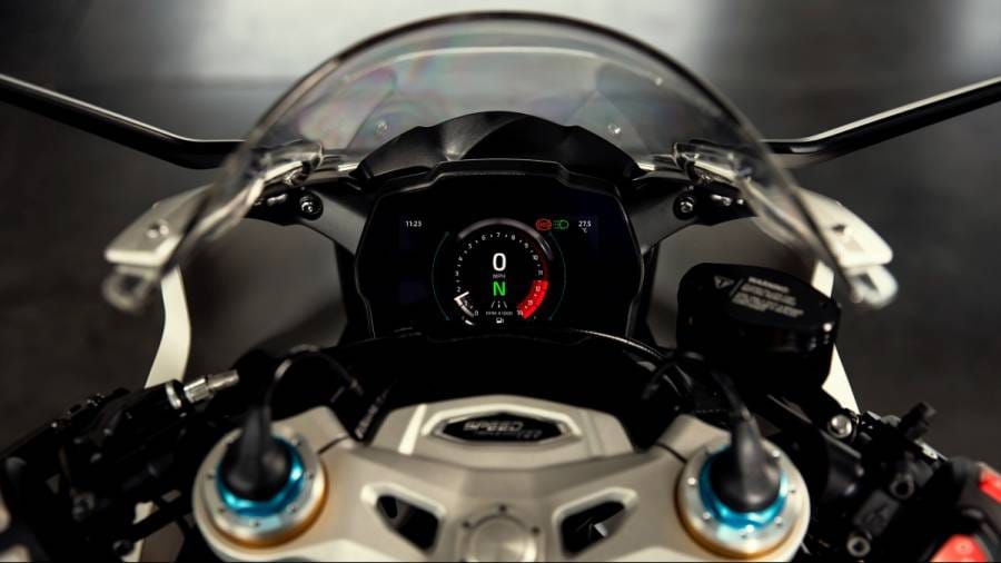 As with the Speed Triple 1200 RS, the RR comes with a full suite of state-of-the-art rider aids, electronics and convenience features designed to not only make the ride easier and safer, but also deliver a tailored set-up for different riding scenarios. The new Speed Triple RR promises to be the most exhilarating-to-ride Speed Triple ride ever, with its Öhlins Smart EC 2.0 electronically adjustable semi-active front and rear suspension which is currently the most advanced suspension system from Öhlins. The RR's clip-on bars are 135mm lower and 50mm further forward and are narrower than those on the Speed Triple 1200 RS. The Speed Triple 1200 RR also gets better stopping power in the form of Brembo Stylema brakes with linked braking system with an adjustable Brembo MCS lever. The bike also gets a bi-directional quickshifter, cornering ABS, switchable cornering traction control (with IMU) and an anti-wheelie system.