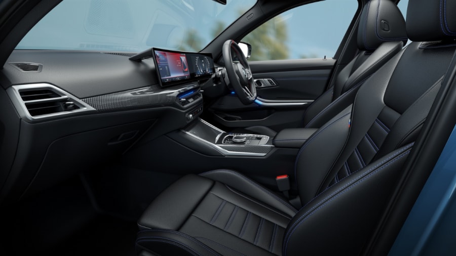 On the inside, the dashboard remains unchanged. BMW upgraded the operating system from version 8.0 to version 8.5, although the functions are still the same. The new system comes with a 14.9-inch infotainment system. The inside has carbon fibre interior trim strips, M High Gloss Shadowline, a newly designed steering wheel with a red centre marker, and sports seats with leather Vernasca upholstery.