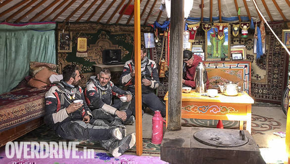 The BMW GS Trophy 2018 riders taking a peaceful breather enjoying local delicacies