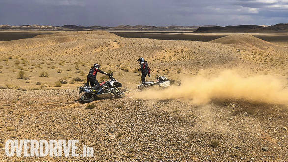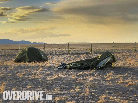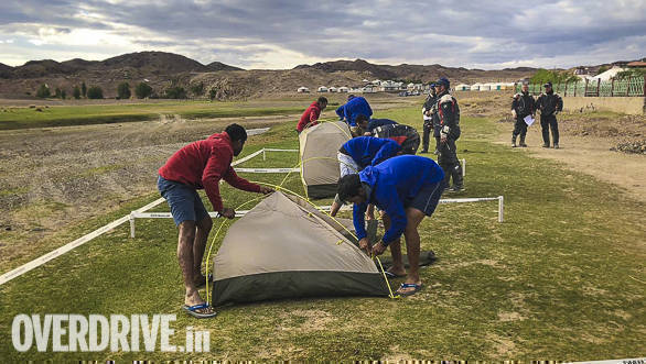 As I opened the door to leave the press tent last night, a gust of sand and dust caught me straight in the face. Visibility was really low as the desert erupted in a sand storm. It took me a bit to find my tent or at least what was left of it, filled up completely with sand. There was sand everywhere, bag, boots, and the back of my throat BMW was prompt to find a few Gers for those of us who had our tents blown away. Sanket and Suprej were already in their tents, which is why they weren't blown away and boy was it a loud and restless night for them.