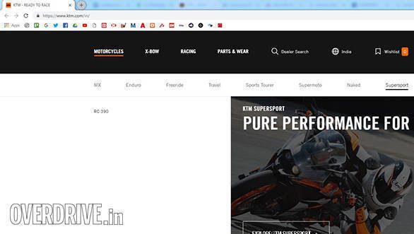A screen grab from KTM India's official website