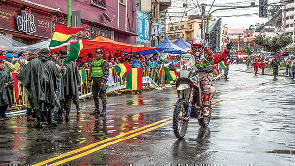Santosh, in this particular case, is lucky. He isn't one of the riders left out in the cold, searching for their team tents. His team is already there. He's managed to change his clothes, and beneath his Hero MotoSports Team Rally pullover, he's got a bionic suit on. It's meant to keep him warm as he's riding through the bitter cold in Bolivia. It's helped to a certain extent, but like he tells us, once water seeps into your clothes, that's it. "I'd trade the cold for the heat any day," Santosh says, telling us that he's looking forward to Argentina, where he says the weather and the stages are nicer. He can't wait to "get the hell out of Bolivia". It's a sentiment that a lot of competitors agree with. Well, the riders, who are exposed to the elements certainly do. The car guys, Santosh says rather enviously, have it easier. It's something he became acutely aware of as he navigated the long Stage 6 in the rain. The temperatures have dropped to around 5 degrees, making the going very hard indeed. The weather's been no friend to the riders.