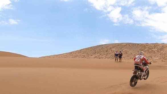 "It was an extremely tough and dangerous stage today with a lot of fesh-fesh and hidden away stones. With everyone going full out all the time, it made visibility very poor for the guys riding at the back. The dunes were also very difficult to cross. One of them was so big that I had to go up and down a few times to gain enough momentum and even then I barely made it to the top. I also crashed twice and hurt my shoulder a bit but managed to pick my bike up and ride it to the finish line," said JRod. The Hero rider also conveyed his best wishes to teammate Santosh for a speedy recovery, while also saying of the incident "it was just one of those stages where keeping yourself safe was a full task in itself".