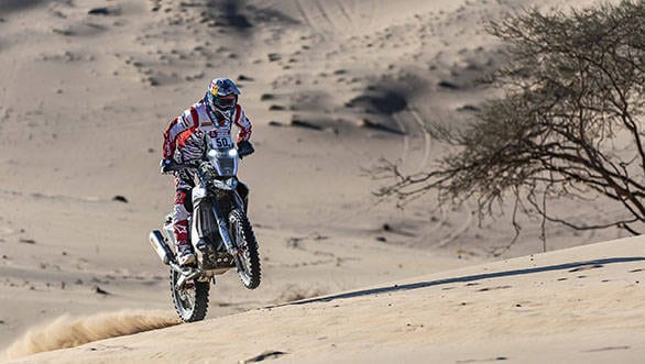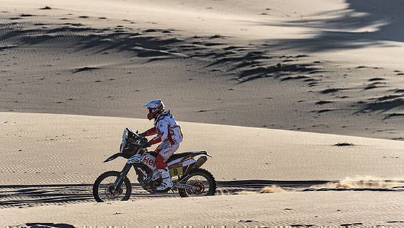 CS Santosh, India's rally raid star, had a tough outing in the Saudi Arabian dunes. Santosh ended the stage 39th, having had to deal with a couple of minor crashes along the way. Despite the fact that he injured his hand a little, the Indian rider is confident of his rhythm, and stated that he had a good feeling about the rest of the Dakar.