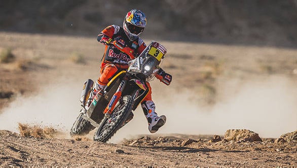 Emerging ahead in the motorcycle category, was Sam Sunderland of the Red Bull KTM Factory Racing Team, who leads the overall standings. Stage victory, however, went to Ross Branch, who gave his home country Botswana its first Dakar stage win. It was a hard day for yesterday's winner, Toby Price, who opened the stage, and lost time as a result. The Australian rider could finish no higher than 15th in the stage, which puts him 9th overall after Stage 2. Pablo Quintanilla, of Husqvarna, is ranked second overall, while Monster Energy Honda's Kevin Benavides is ranked third overall after the second stage of the rally.
