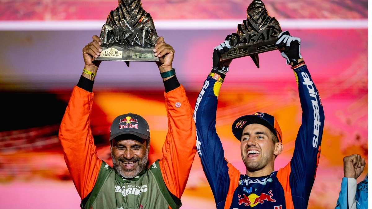 A 14-day rally, and still the difference between the 1st and 2nd places happens to be just 2 seconds. In one of the most shocking moments in world motorsports, Luciano Benavides edged out Ricky Brabec by just 2 seconds, which is the narrowest margin in the history of the rally. The courtesy goes to a navigation error 7 km from the finish line. Luciano from Red Bull KTM Factory Racing clinched the first position with a time of 49h 00' 41'', and right on the tail was Ricky Brabec from team Monster Energy Honda HRC. The third spot was secured by Tosha Schareina, also from Honda HRC, with a time of 49h 25' 53'', a difference of 12 seconds and a penalty of 10. Luciano joins his brother Kevin, who was a winner in 2021 and 2023.