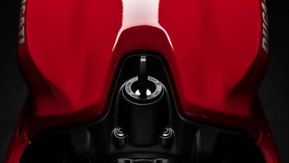 It looks a lot like the V4 but it can be differentiated by the fairing, exhaust design and the side-mounted monoshock borrowed from the 959. It gets the V shape day time running lamp strip on the face of the bike and it borrows the 4.3-inch TFT from the V4.