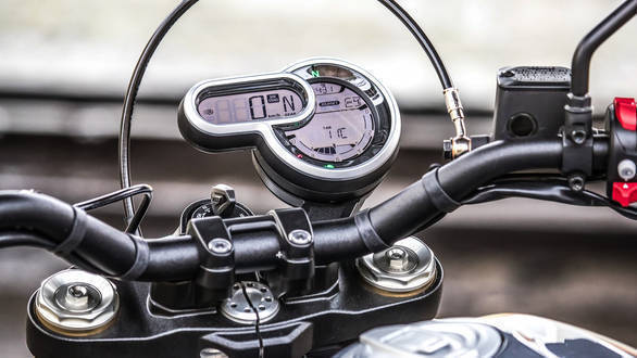 The instrument cluster on the Ducati Scrambler 1100 gets a secondary display as well and offers a lot more information including riding modes, traction levels and a fuel gauge as well