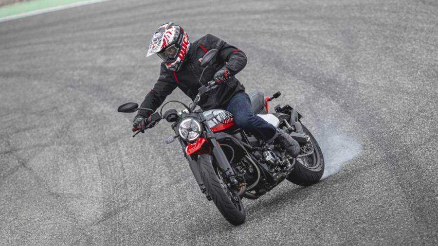 The Ducati Scrambler Urban Motard is powered by the same 803cc L-Twin engine that is shares with the other bikes in the Scrambler 800 range. The engine makes 72PS of max power and 66Nm of max torque. The bike rides on 17-inch spoked wheels at both ends and come clothed in sticky road-biased Pirelli Diablo Rosso III tyres.