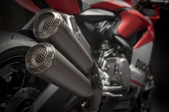 Ducati has also added a new Ohlins steering damper, while the incorporation of a lightweight, lithium ion racing battery helps reduce weight. The Ducati 959 Panigale Corse is 2.26kg lighter than the standard 959 Panigale. The new, Akarapovic Titanium exhausts, replete with the race bike style gauze at the tip, looks beautiful and has been homologated for road use, as well.
