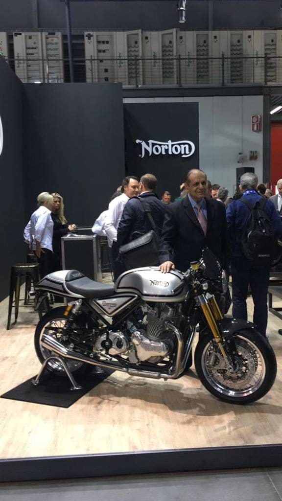 Arun Firodia, chairman of Kinetic Group, posing with the Norton Dominator