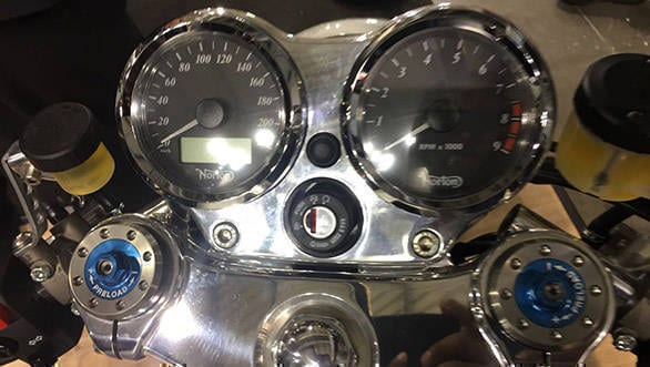 The Norton Dominator gets the classic retro styled analog meters showing the necessary information. The only digital bit is the small screen which we believe will show the trip information