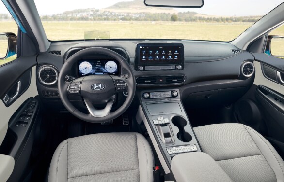 The Kona Electric comes fitted with a wider range of advanced driver assistance systems. Newly added are blind-spot and rear cross-traffic collision avoidance, a leading vehicle departure alert for the adaptive cruise control, a safe exiting alert system for passengers and a rear seat passenger alert system.