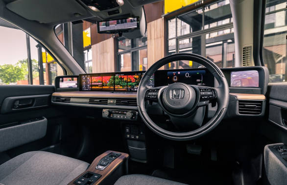 But this hatchback's party piece is its interiors. The theme is heavily retro here too, with the simple controls, flat surfaces, cloth upholstery and wood panelling. But most striking is the five-screen setup on the dash. The two closest to each door are displays for the rear-view cameras, a la Audi e-tron. Then there's an instrument cluster and two 12.3-inch LCD touchscreens in the middle. Aside from being heavily customisable in controlling all vehicle functions, this unit can also be used to display your chosen media via the on-board Wi-Fi connection. Further, there's a voice assistant along with all the latest connectivity and driver-assistance tech.