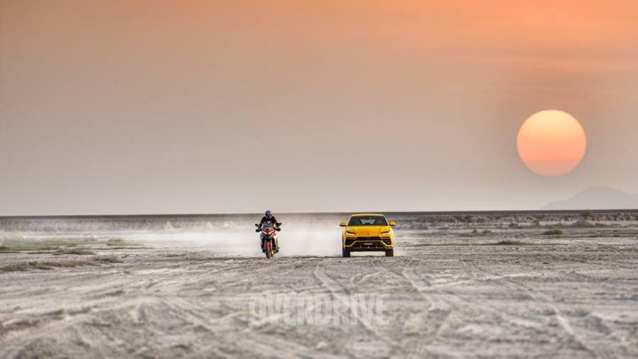 The Sambhar lake is India's largest inland endorheic lake, which means that though there are five rivers that flow into this lake, there is no outlet besides evaporation. It is an area much like the Rann of Kutch - wet during the monsoons but flat, arid and hard during the summer months. Once the water evaporates, the surface is hard enough to drive on, fast. We've driven here before, but never in something as outrageous as the Urus, or as mental as the Multistrada V4 S.