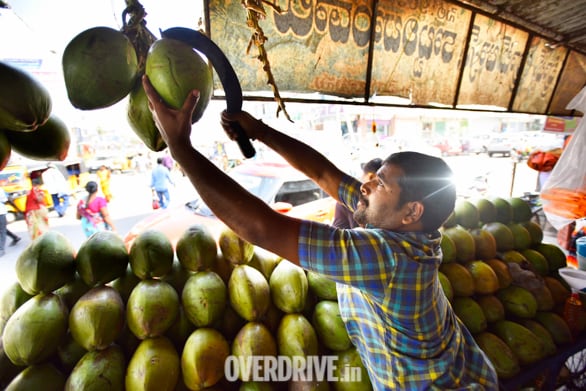 The coconut-hawkers in Ongole pack coconut water in road trip friendly pet bottles. The Swift's door pads took two bottles each, ensuring that we didn't run out of this tasty beverage for long