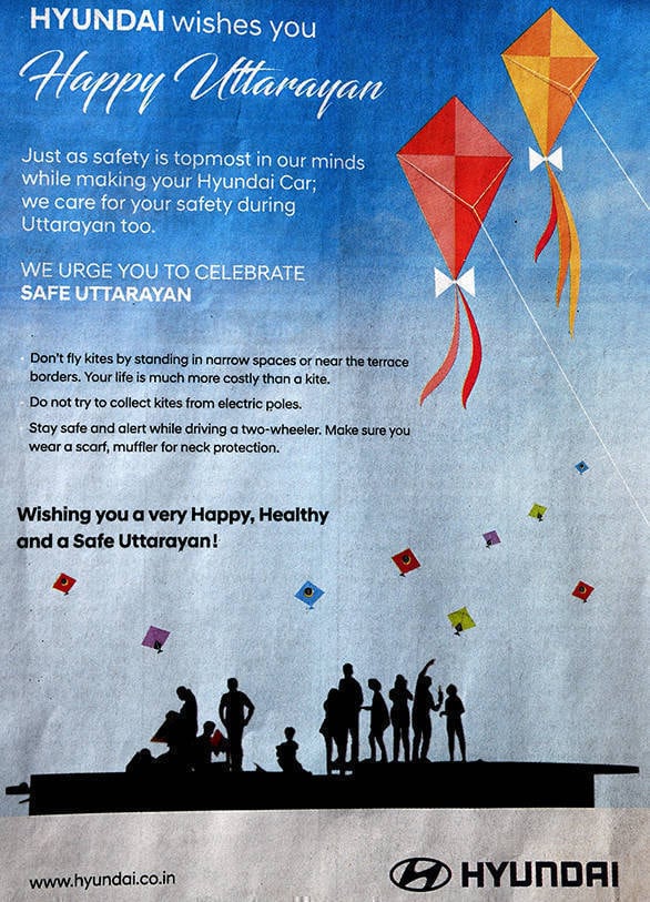 Many manufacturers released advertisements wishing citizens a 'Happy Uttarayan'