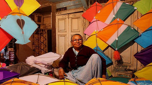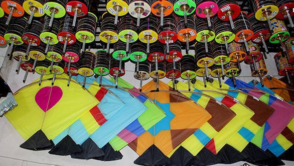 The' Fighter Kite' and the glass coated thread (manja) is unique to India
