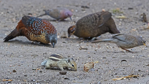 Spurfowl and squirrel