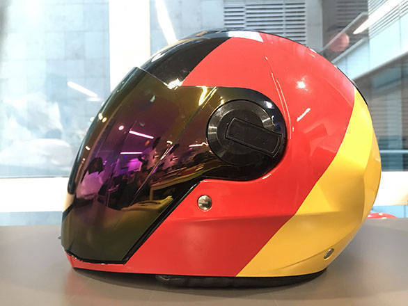 Steelbird Air SBA-2 Flag helmet comes with a mirror-finish gold visor installed and an additional clear visor