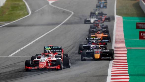 Prema Racing driver, Jehan Daruvala, leads the field at Barcelona