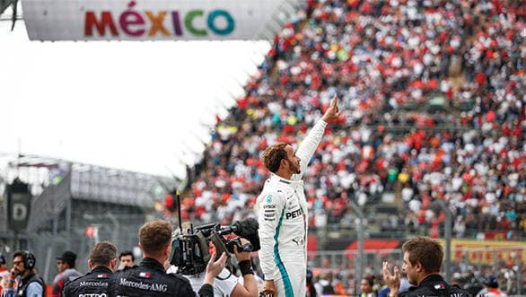 Lewis Hamilton celebrates his fifth Formula 1 world championship title at Mexico