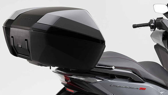 When it comes to boot space, the maxi-scooter can include space for two full-face helmets under the seat, which can be partitioned to store luggage separately which is secured via a smart key, that also controls the main ignition switch and optional 45-litre removable top box. The top box gets locked automatically as the rider walks away, or at the touch of a button of the smart key.