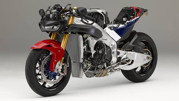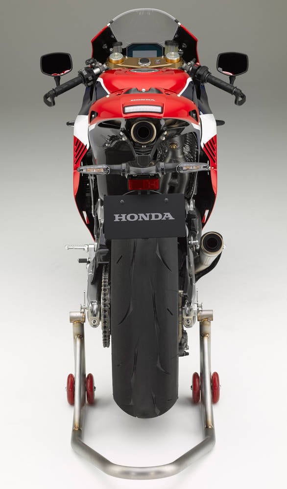 The exhaust is titanium and it looks as close to the MotoGP unit as possible while incorporating the doodads needed to meet street emission and noise requirements. Finally, Honda kept all the styling from the concept it showed at Milan earlier but has ditched the LED lamps for conventional lights - which are more compact and lighter - the LEDs needed heat exchangers.