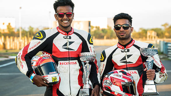 Overall winners S Mathana Kumar and B Aravind of Honda Ten10 Racing