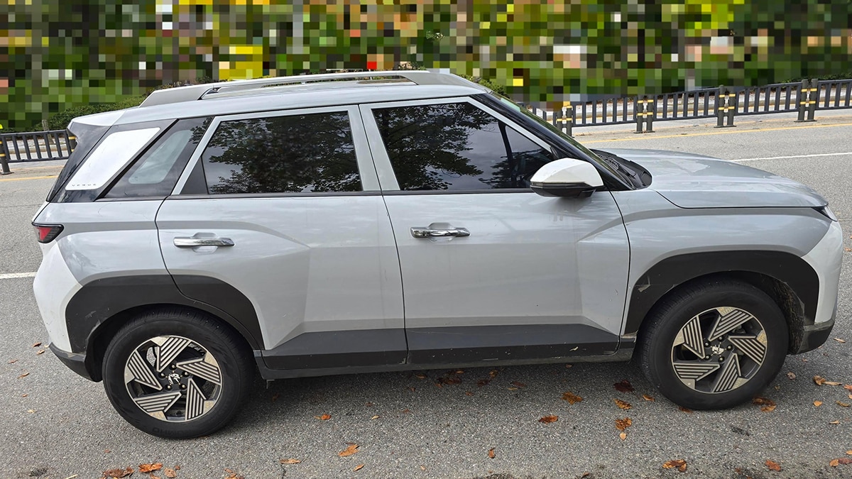 On the front, we see vertically stacked LED headlamps with slim DRL strips integrated near the bonnet line. There is a new silver skid plate on the lower bumper and rugged cladding around the wheel arches for a more SUV-like stance.