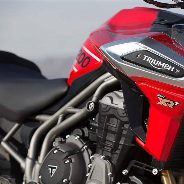 The Tiger 1200's 1,215cc, liquid-cooled, in-line three-cylinder engine produces 141PS which Triumph claims is the highest in its class for a shaft-driven motorcycle along with 122Nm.