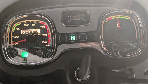 The instrument cluster is another attractive feature of the Radeon, since it looks distinct. In keeping with the retro theme of the motorcycle, the Radeon has an analogue speedometre and fuel gauge. In addition, there are other tell-tale lights, including an Eco/power mode indicator and side stand down warning