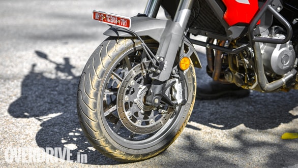 The TRK 502 X gets tubeless- wire spoke wheels shod with Metzeler Tourance tyres