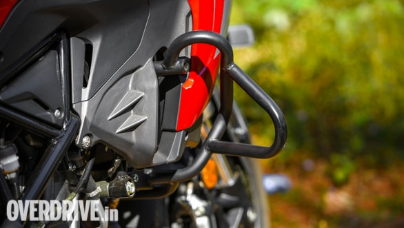 Tubular grab rail and aluminium base plate is also standard on both bikes