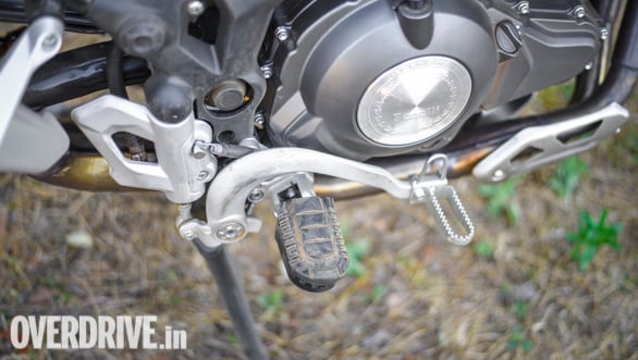 Rubber pads on the footpegs are large and flat enough to rest you feet firmly. They also go a long way in absorbing some amount of the vibrations