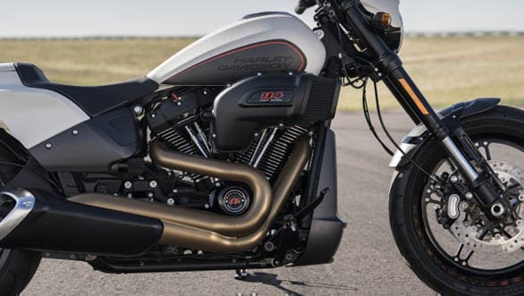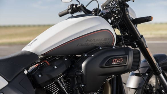 The Harley-Davidson FXDR 114 gets a race-inspired chin fairing conceals much of the oil cooler.