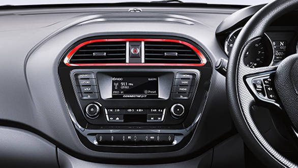 Inside, the AC vents in the Tata Tigor Buzz edition get a red highlight instead of the chrome detailing on the regular model