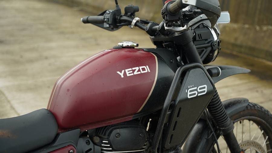 The 2024 Yezdi Adventure now comes in new colours and graphics, lighter and slimmer metal frame with "EST. 69" lettering, new exhaust, improved sump guard, updated engine similar to the Jawa 350, and re-arranged components. It is also lighter and cheaper compared to its predecessor. The 2024 Adventure is available in four new shades with distinctive cost: the Tornado Black is Rs 2,09,900, the Magnite Maroon DT is Rs 2,12,900, the Wolf Grey DT is Rs 2,15,900 and the Glacier White DT is Rs 2,19,900 (all ex-showroom).