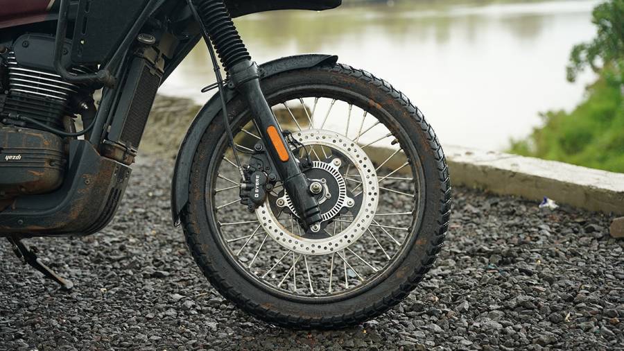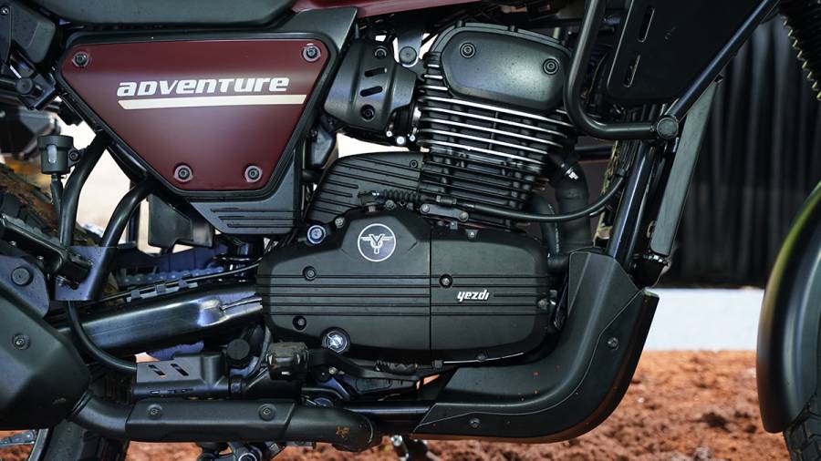 Powering the 2024 Yezdi Adventure is a 334cc, single-cylinder, liquid-cooled engine producing 29.6PS and 29.8Nm. This motor is coupled to a six-speed gearbox, which has been tweaked. The 1st, 2nd, and 3rd gears have shorter ratios, while the remaining three gears have longer ratios.