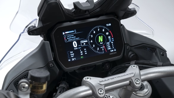 This can also be seen with the slimmer footpeg holders. Also new on the Multistrada V4 is the 6.5-inch TFT instrumentation, which shows significantly more information controlled by a joystick on the switchgear. Also, using the Ducati connect application, one can access proper navigation on this screen. Ducati has also given a provision for storing mobile phone on the fuel tank with USB connection to charge the phone on the go.