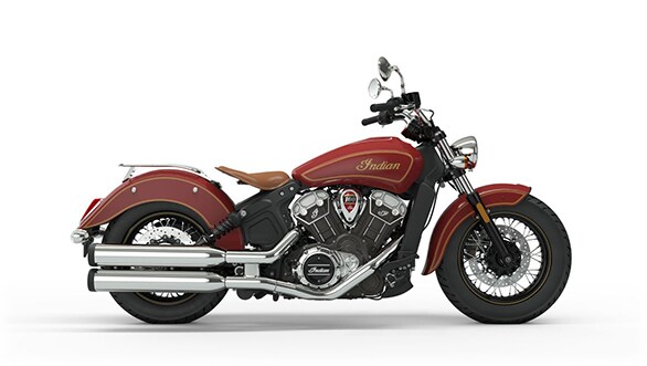 Whereas the Scout anniversary edition, which is limited to 750 units, gets red paint with golden highlights and a 100th Anniversary' badging between the engine cylinders. The exhaust can on the Anniversary edition gets chrome finish as opposed to the black finish on the Bobber Twenty and the motorcycle sports a different handlebar setup called the beach bars.