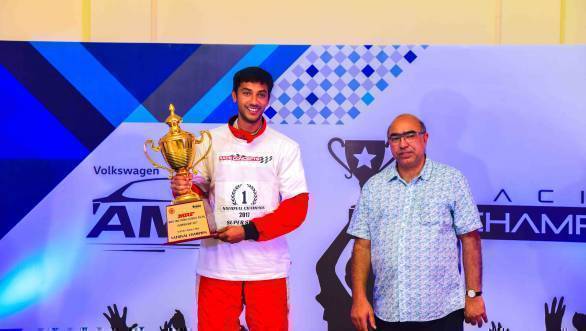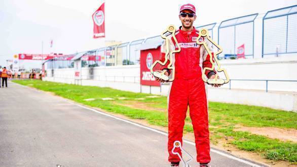 With FMSCI president Akbar Ebrahim and the championship trophy that he got to take home thanks to his tremendous success on track