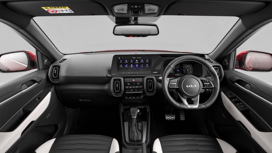 On the inside, the Sonet facelift gets subtle changes to its interior over its predecessor. It now boasts a new 10.25-inch touchscreen infotainment system, a new 10.25-inch all-digital instrument cluster, LED ambient sound lighting, a new GT Line lettering on the steering wheel, and find my vehicle with a surround view monitor. The interior colour themes include all-black with semi-leatherette upholstery, black and beige semi-leatherette upholstery, black and brown with leatherette upholstery, black leatherette upholstery, and Sage Green leatherette upholstery with black interior.