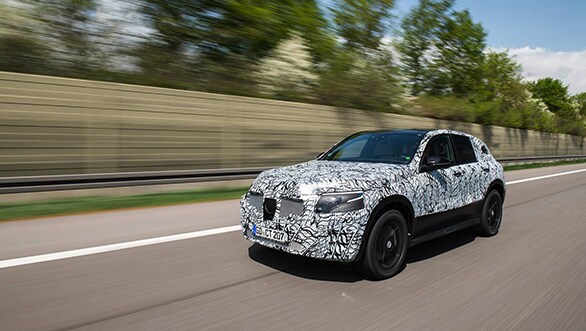 In terms of exterior styling, the car seemingly follows a design more conservative than what the EQ concept showcased. The lines seem to closely match the brand's combustion-engined cars with the major differences being in the lighting arrangement and front fascia. The LED light signature, an inverted version of the one seen on the new A-Class and CLS-Class, is possibly a distinguishing feature of the EQ range.