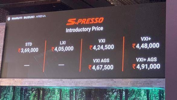 Maruti Suzuki S-Presso Std - Rs 3.69 lakh ex-showroom India