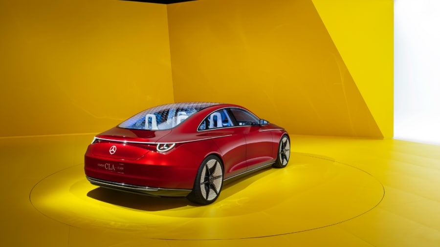 Mercedes-Benz claims that the Concept CLA's powertrain previews 'next-generation electric-drive technology' for production EVs. It is based on the Vision EQXX and has a stated range of more than 750km. The Concept CLA-Class has a 250-kilowatt DC rapid charging capacity thanks to its 800-volt electrical design, allowing it to add an estimated 400km of range in 15 minutes.